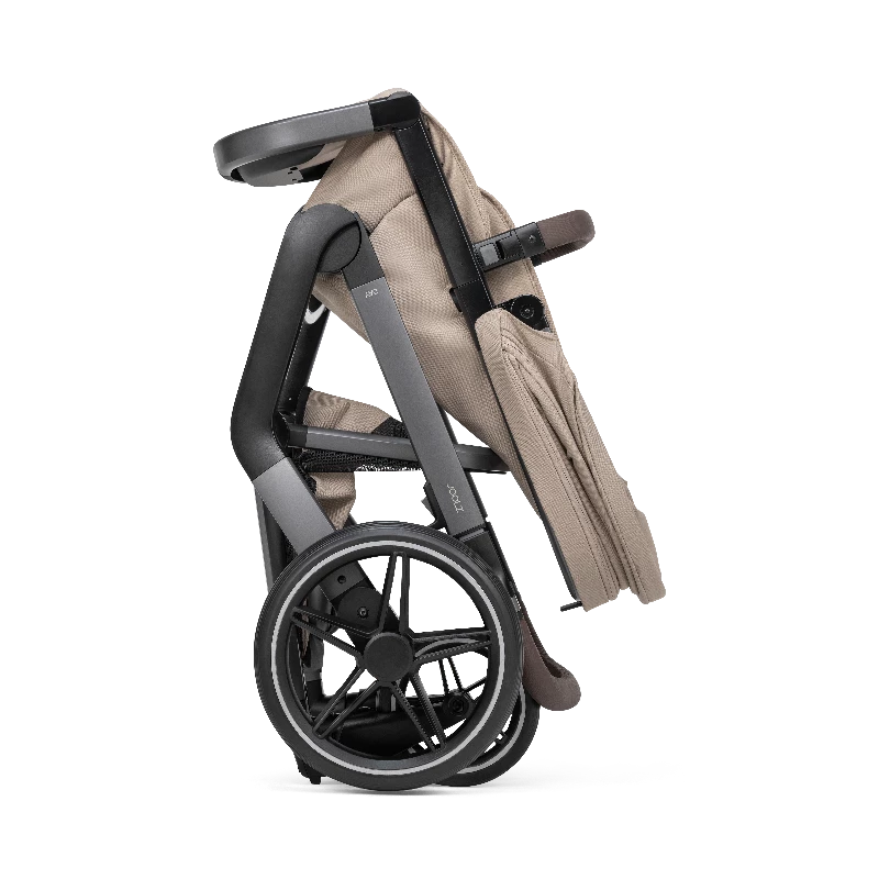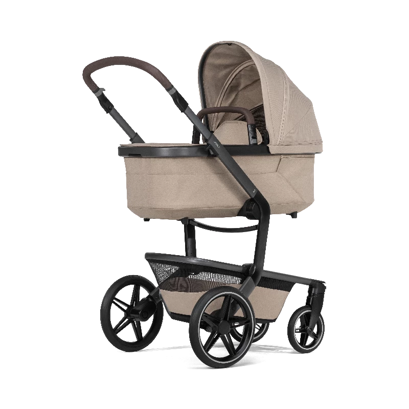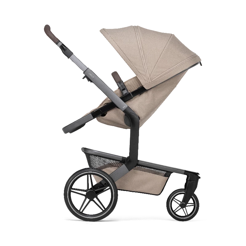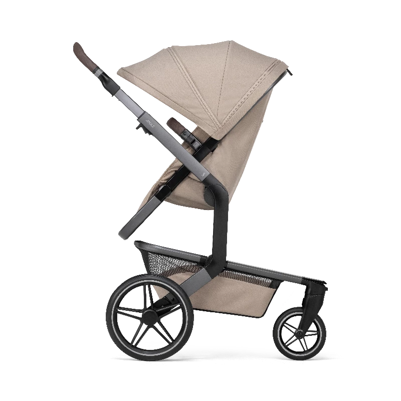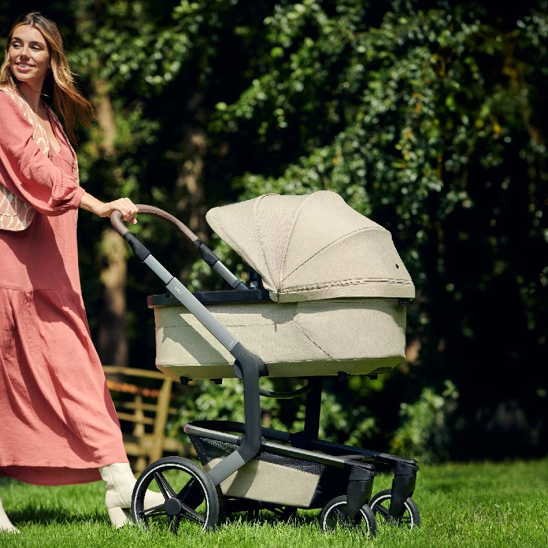 Joolz Day + kører utroligt let takket være det nye lette hjuldesign, og med enhåndsstyring er Joolz Day + let at manøvrere. Day+ har affjedring på alle 4 hjul, så du skal bare nyde turen i byens parker, på brostenene eller lås de drejelige hjul for mere komfort på ujævne veje eller i skoven.
