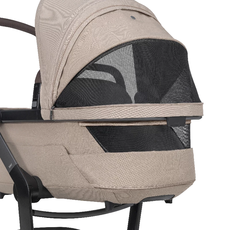 Joolz Day + har en meget rummelig liggedel (80cm), som bruges ca. de første 6 måneder. Liggedelen er med åndbar madras med ekstra hovedbeskytter, der giver mere komfort omkring barnets hoved. Ved endt brug af liggedelen, ændres denne nemt til et klapvognssæde, op til 22kg.