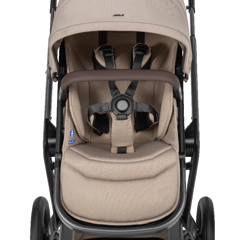 Det utroligt behagelige klapvognssæde yder ultimativ ligge- og siddekomfort. Der er 6 sædepositioner (3 mod forældre og 3 mod verden). Sædet vokser med barnet og kan justeres fra sele til fodstøtte. Joolz Day+ har et højt sæde, så du ikke behøver at læne dig langt ned til barnet. Det har også den perfekte bordhøjde, hvilket gør Day + til en højstol der er med på farten. Day+ er udstyret med en drejelig frontbøjle, der kan åbnes med en hånd, hvilket gør ind og udtagning lettere for alle.