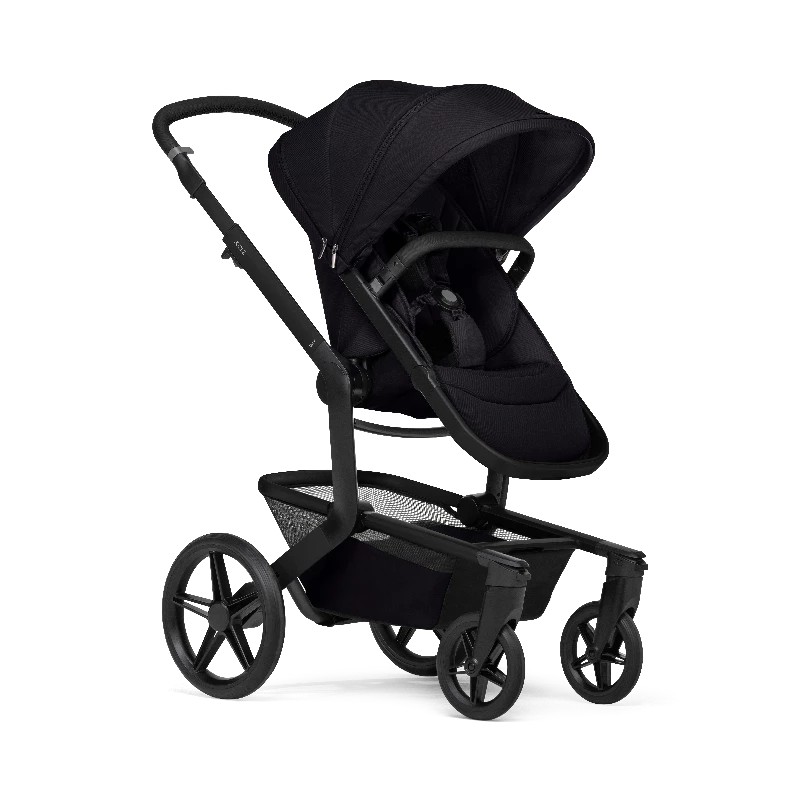 Joolz Day + kører utroligt let takket være det nye lette hjuldesign, og med enhåndsstyring er Joolz Day + let at manøvrere. Day+ har affjedring på alle 4 hjul, så du skal bare nyde turen i byens parker, på brostenene eller lås de drejelige hjul for mere komfort på ujævne veje eller i skoven.
