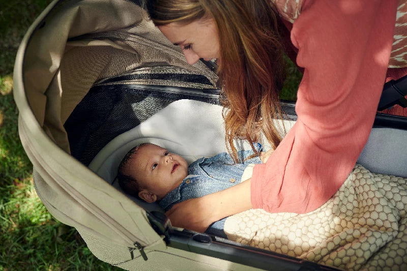 Joolz Day + har en meget rummelig liggedel (80cm), som bruges ca. de første 6 måneder. Liggedelen er med åndbar madras med ekstra hovedbeskytter, der giver mere komfort omkring barnets hoved. Ved endt brug af liggedelen, ændres denne nemt til et klapvognssæde, op til 22kg.