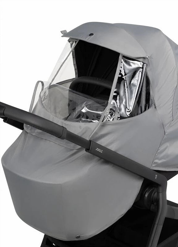 Lad det regne, lad det sne du og din baby har steder at tage hen. Joolz Hub2 regnslag passer perfekt til både sædet og liften, og holder dit barn og barnevogn tørre. Det gennemsigtige vindue lader din baby kigge ud på verden, og der er en lille åbning, så du kan give dem en legeting eller en snack for maksimal underholdning. Regnslaget har en vandafvisende coating og tørrer utroligt hurtigt, så du kan folde det sammen og lægge det væk, kort efter regnen stopper.