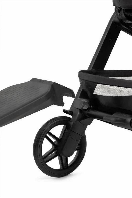 Det perfekte tilbehør til forældre, der er ude med to børn. Fastgør klipsen omkring stellet, og så er du klar. Tilføj fodbrættet til din Hub2-barnevogn med et enkelt klik, og din tumling er klar til at trille med, hvad enten de står eller sidder. Tid til at løbe videre efter en pause på farten? Bare slå fodbrættet op, og gå side om side.