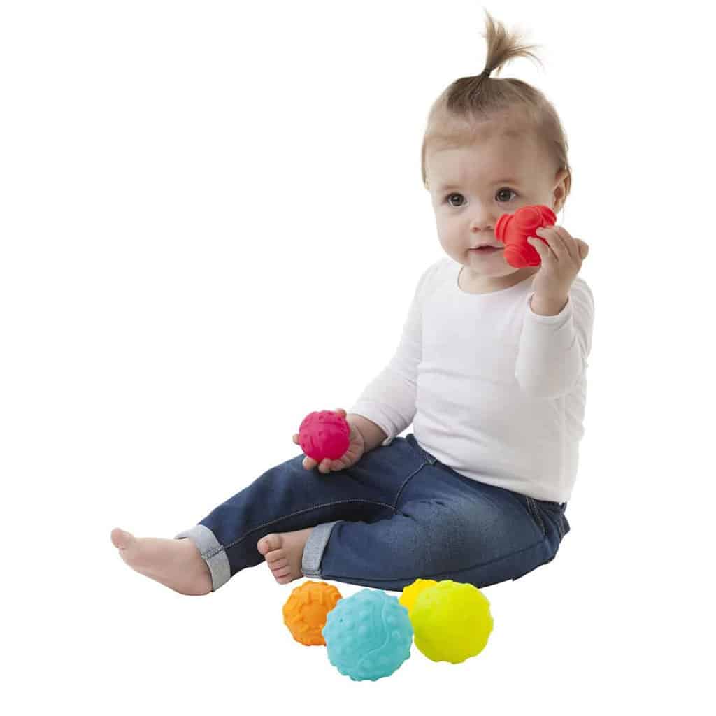 Bløde sansebolde. Bløde sansebolde i meget flotte farver med forskellige strukturer. Babyen kan sikkert udforske boldene med hænder og munden, som opfordre babyen til at udvikling af sanserne.