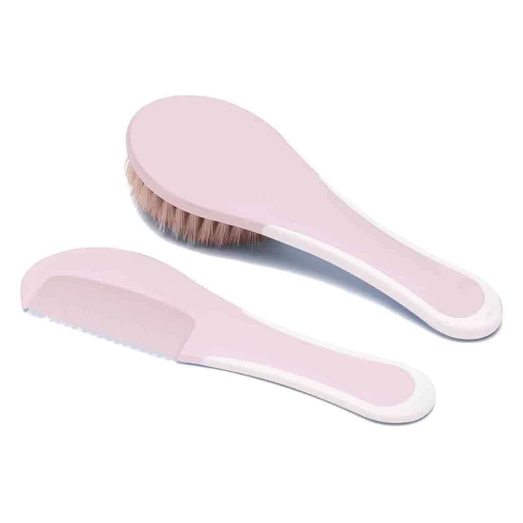 Kam & børste, Mellow Rose. Kam og børste sættet er ideelt til at pleje din babys fine hår på en skånsom måde, da børsten er lavet af blødt naturligt hår og kammen har blødt rundede hjørner.