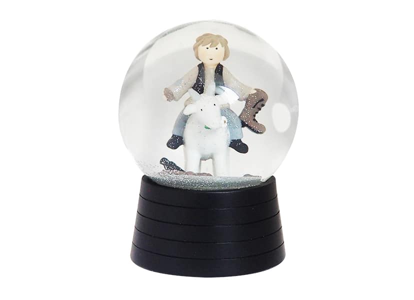 Kids By Friis Snekugle Med Musik - Klodshans. Sød snekugle med sort bund med striber. Inde i snekuglen kommer den kendt H. C. Andersen karakter, Klods Hans, riddende på en ged. I kuglen er også Klods Hans' tre gaver til prinsessen. Støvlen har han i hånden, mens kragen ligger på jorden ovenpå pludder.