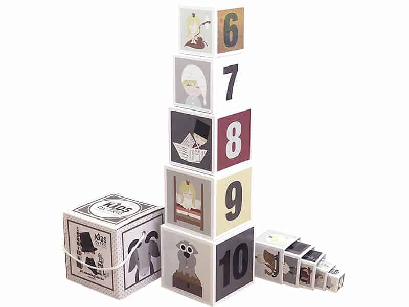 Kids by Friis kasserne er af kraftig karton, og de kan stables oven på hinanden og lægges i hinanden. Kasserne giver barnet en fornemmelse af forskellen på stor og lille samt en forståelse for tallene.