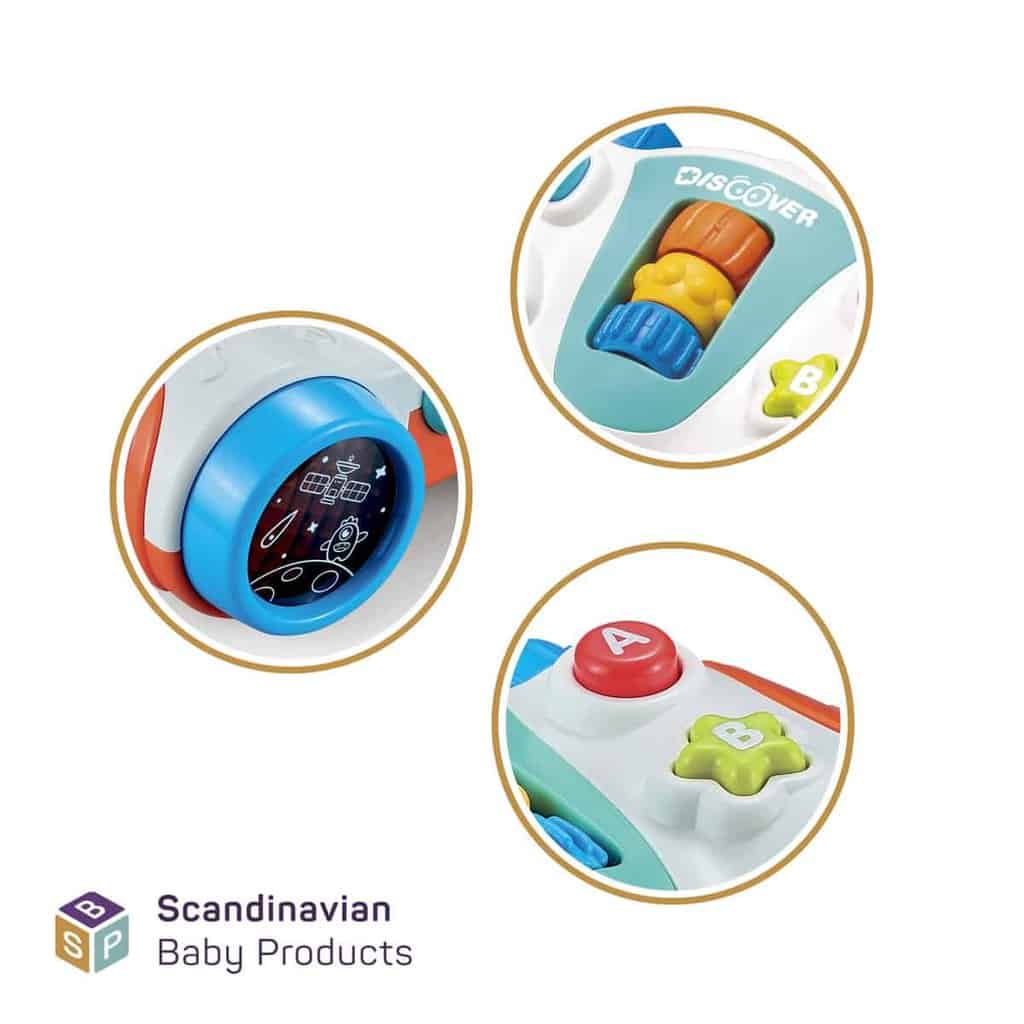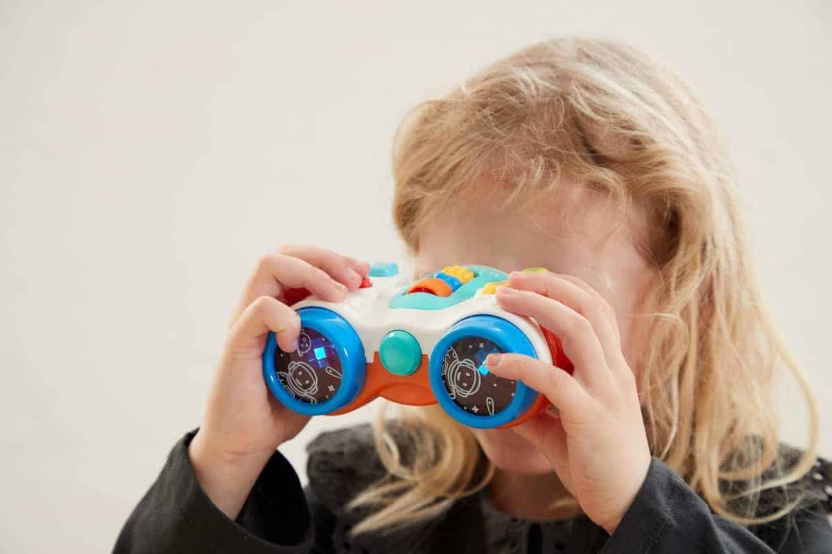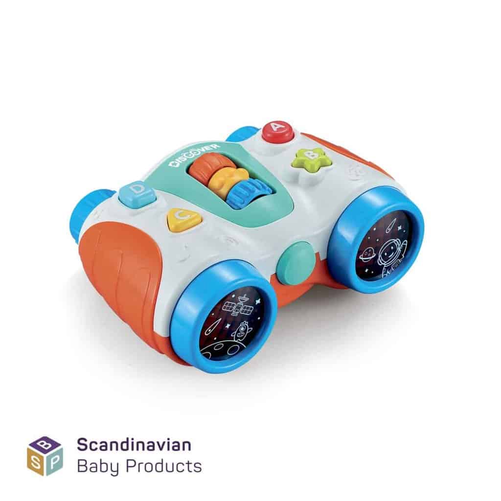 Legekikkerten fra Scandinavian Baby Products er fyldt med sjov og leg. Kikkerten kan lyse børneværelset op om aftenen med sjove illustrationer. Kikkerten kan afspille musik, toner og sjove dyrelyde.