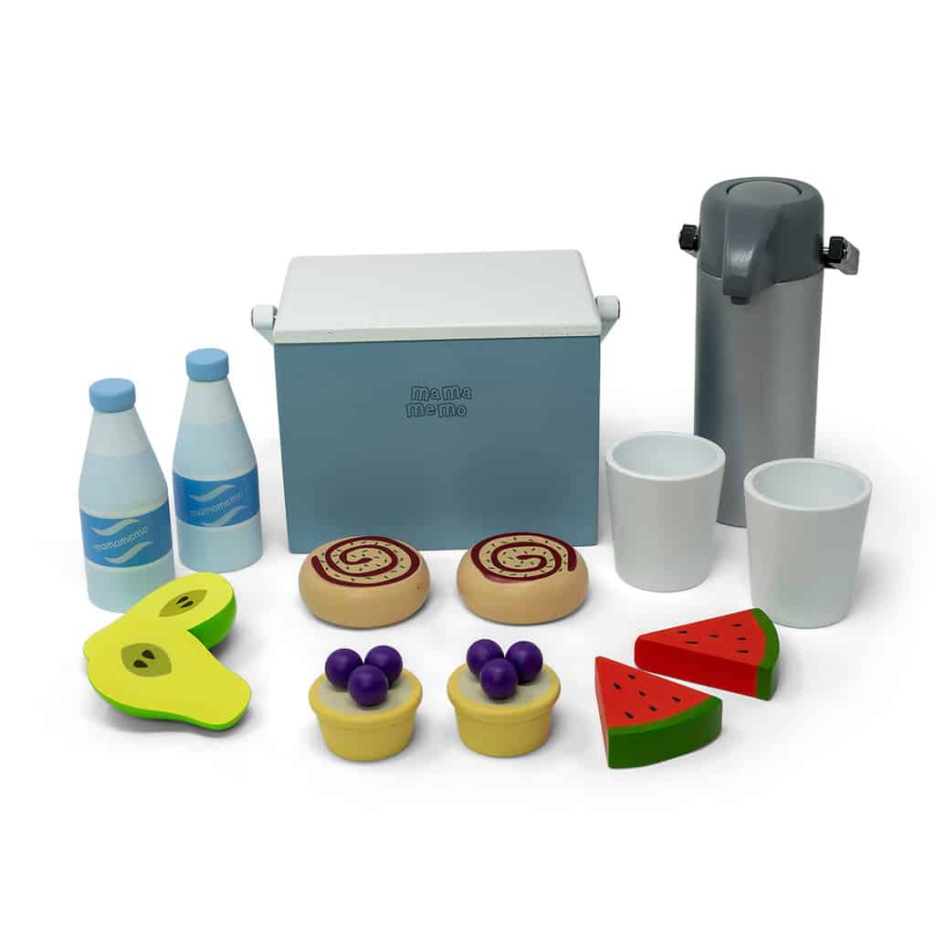 Om den næste picnic foregår i stuen eller i haven, så kan der serveres bl.a. kaffe og lækre kager. Maden kan gemmes være i den medfølgende køleboks.