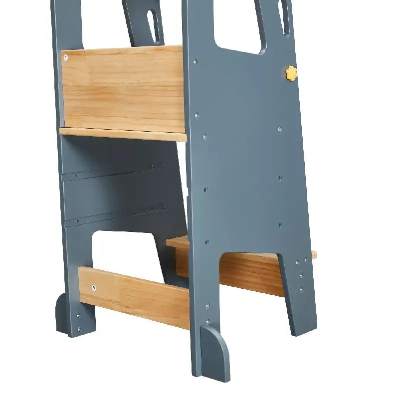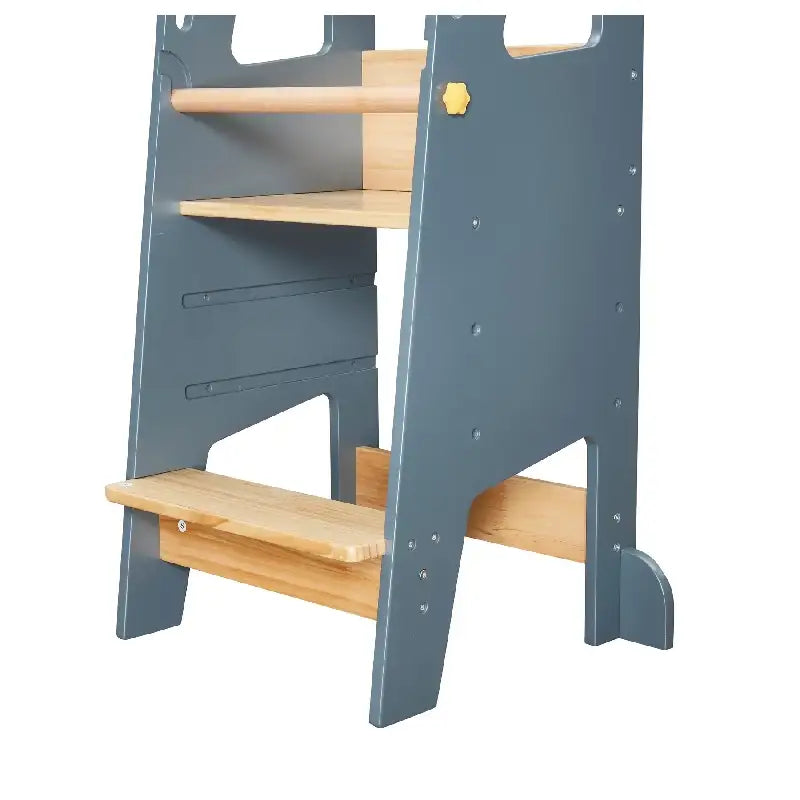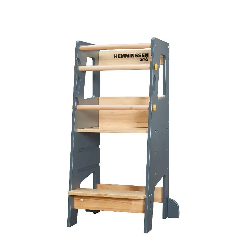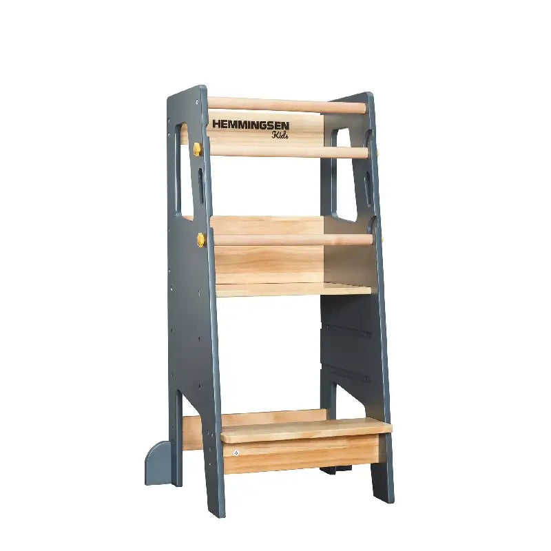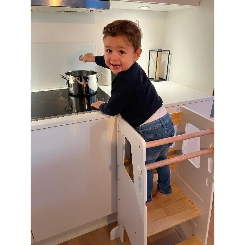 Lad dit barn deltage i køkken aktiviteter på en sikker måde. Liv Lærinsgtårnet er et unik læringstårn som er produceret i holdbart fyrretræ og bæredygtige materialer. Ekstra sikkerhed bagpå, så dit barn ikke kan falde ud. En sikkerhedskinne fastgjort med skruer samt to let aftagelige sikkerhedsbøjler med knopskruer. Leveres med skridsikre dutter,antivippe fødder, samt justerbar platform, unik til børn fra 1-5 år. Vores trækniv medfølger