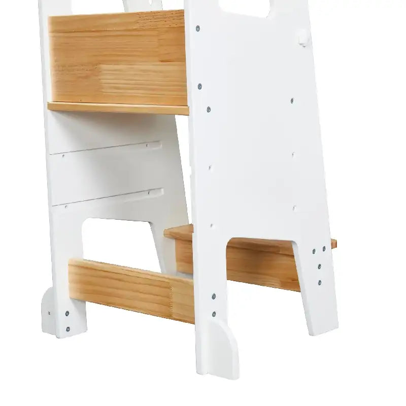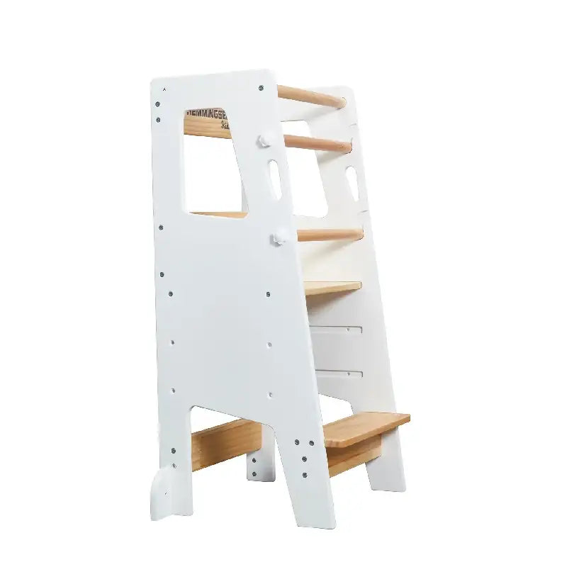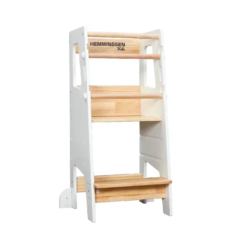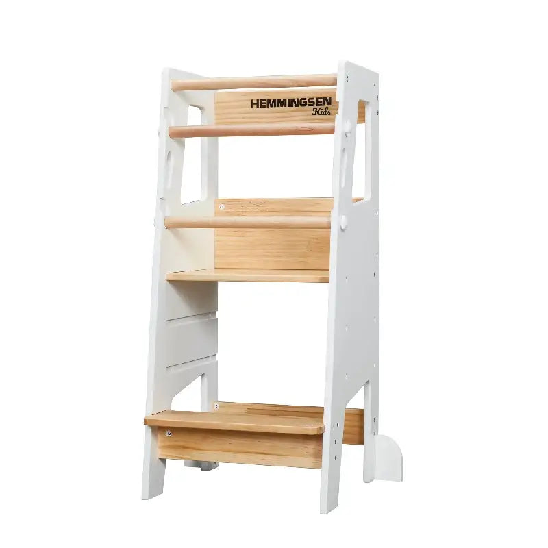Lad dit barn deltage i køkken aktiviteter på en sikker måde. Liv Lærinsgtårnet er et unik læringstårn som er produceret i holdbart fyrretræ og bæredygtige materialer. Ekstra sikkerhed bagpå, så dit barn ikke kan falde ud. En sikkerhedskinne fastgjort med skruer samt to let aftagelige sikkerhedsbøjler med knopskruer. Leveres med skridsikre dutter,antivippe fødder, samt justerbar platform, unik til børn fra 1-5 år. Vores trækniv medfølger