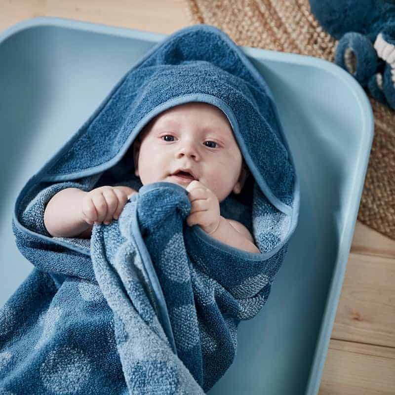 Hoodien er et lækkert og blødt frotté hættehåndklæde, som du kan svøbe dit barn i efter et dejligt bad. Hætten beskytter de små øre, så barnet ikke bliver afkølet. Fås i flere farver.
