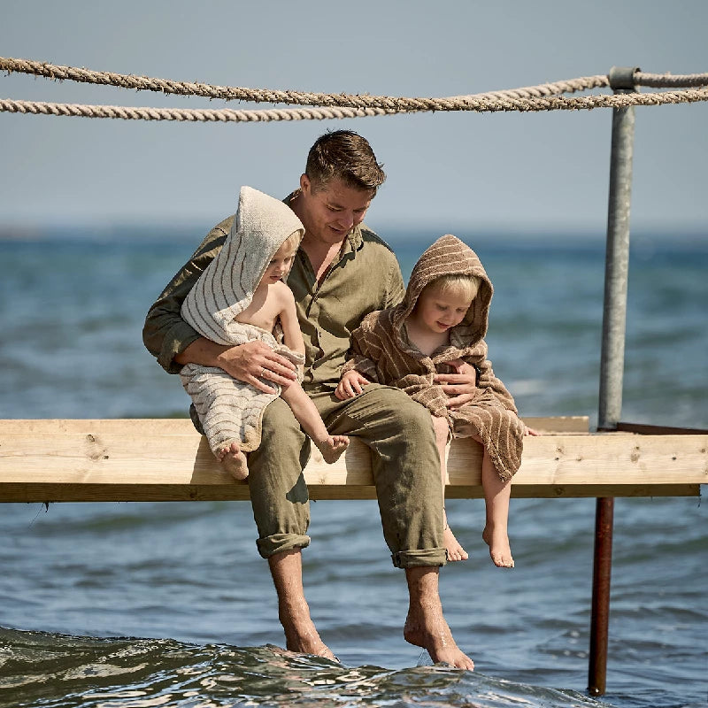 Hoodien er et lækkert og blødt frotté hættehåndklæde, som du kan svøbe dit barn i efter et dejligt bad. Hætten beskytter de små øre, så barnet ikke bliver afkølet. Fås i flere farver.