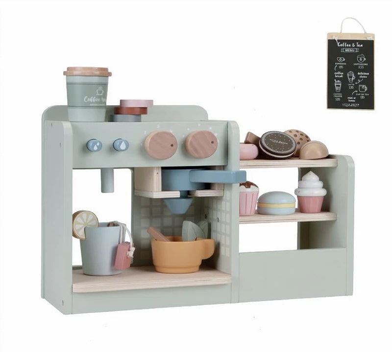 Læn dig tilbage, slap af og nyd en lækker espresso lavet af din lille Barista med den vidunderlige espressomaskine lavet af højkvalitets -certificeret træ i farverne og designet fra Little Dutch.
