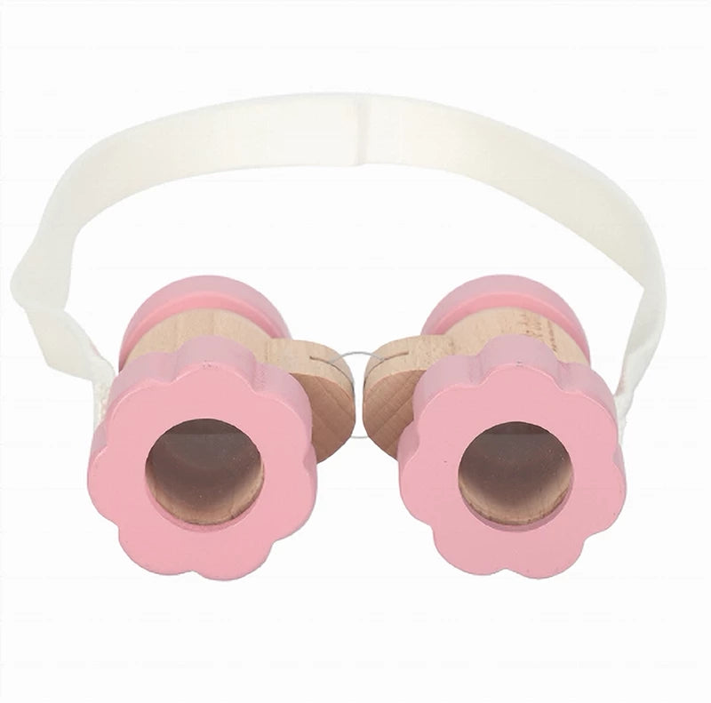 Udforsk naturen med denne blomsterformede kikkert i træ! Kikkerten er dekoreret med smukke farver og illustrationer fra Fairy Garden-temaet og gør ethvert eventyr spændende. Den forstørrer virkelig og kan justeres til afstanden mellem dine øjne, så du får et optimalt syn. Bomuldssnoren med velcrolukning sikrer, at kikkerten hænger sikkert om halsen. Ideel til nysgerrige opdagelsesrejsende, der vil udforske verden omkring dem