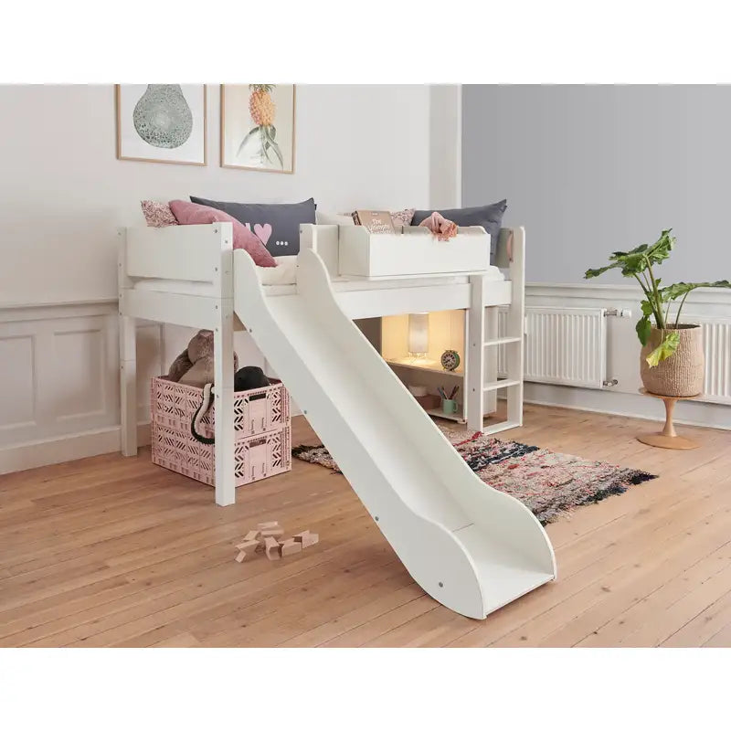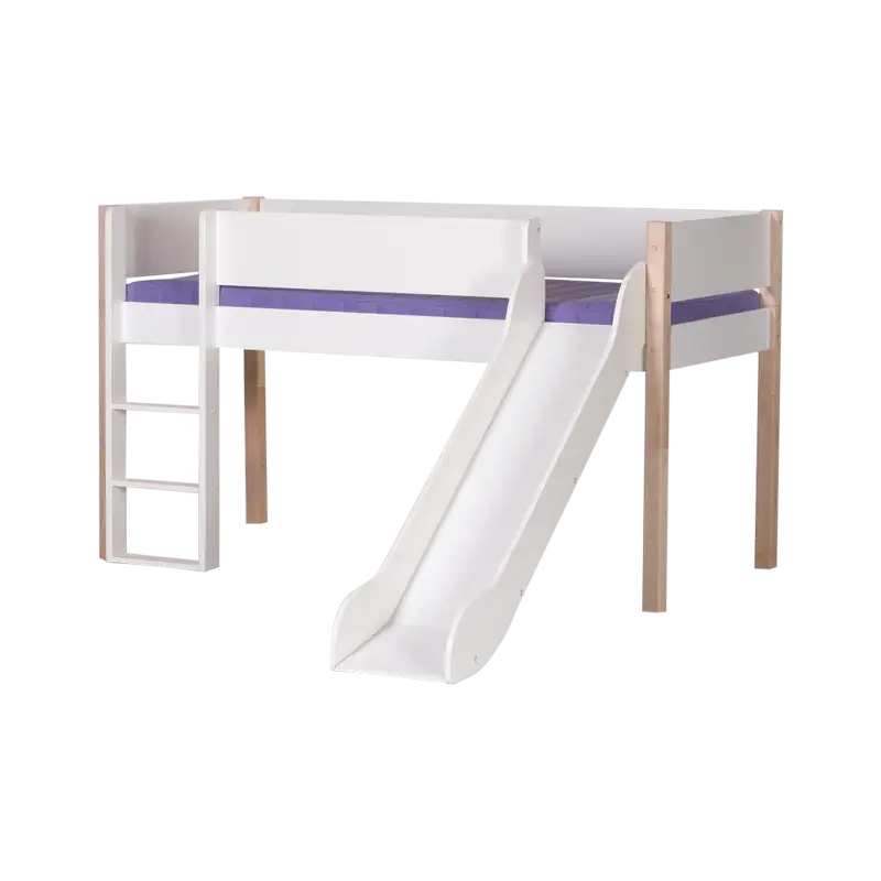 Loke er en mellemhøj designseng, der kommer med en rutsjebane, som gør det sjovt at stå ud af sengen hver morgen.