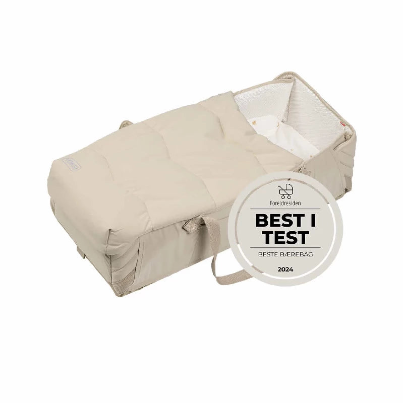 Voksi Carry Me er velegnet til nyfødte op til 6 måneder (maks. 9 kg) og kan foldes ud fladt. Bær sikkert din baby og giver barnet beskyttelse, varme og kærlighed. Perfekt derhjemme eller på farten.