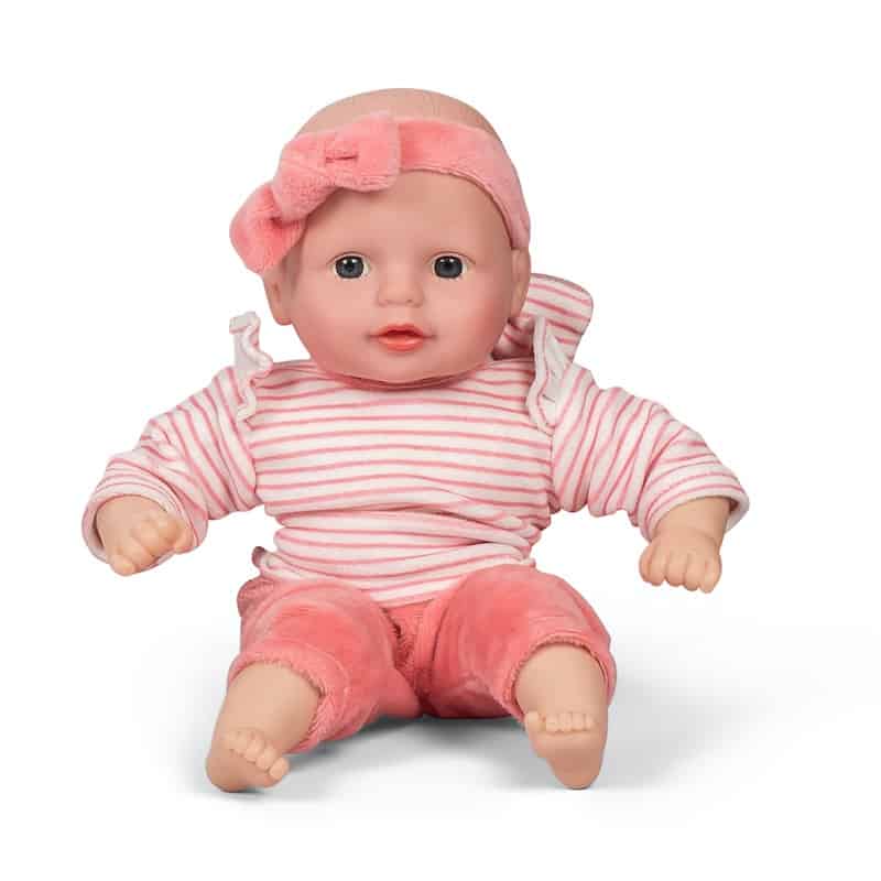 Hun er fri for giftige blødgørende stoffer og parfume. Ida kan allerede bruges af børn helt nede fra 1-årsalderen. Hun er 30 cm lang, har flotte blå øjne, ingen hår og ´fixed eyes´ - altså kan øjnene ikke lukkes. Ida er en slaskedukke med hoved, arme og ben i vinyl og en blød krop af stof med fyld. Der medfølger ét lækkert, blødt sæt tøj bestående af hårbånd med sløjfe, trøje og bukser.