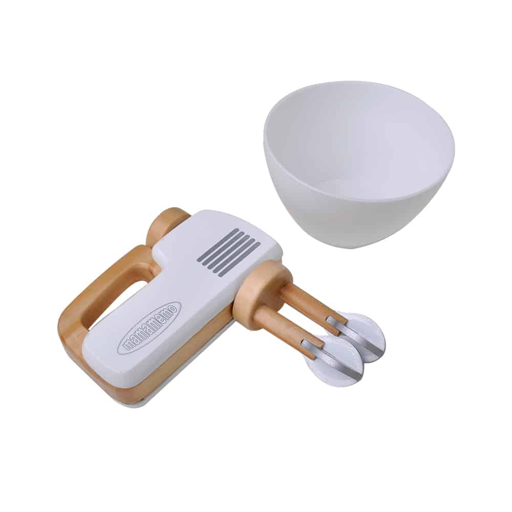 Mamamemo Håndmixer, smart håndmixer i træ, så de små kokke kan lave flødeskum. Hvis der drejes på håndtaget, der sidder øverst, drejer piskerisene rundt. Så bliver legen i køkkenet pludslig meget sjovere.