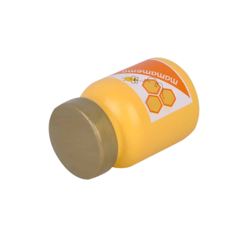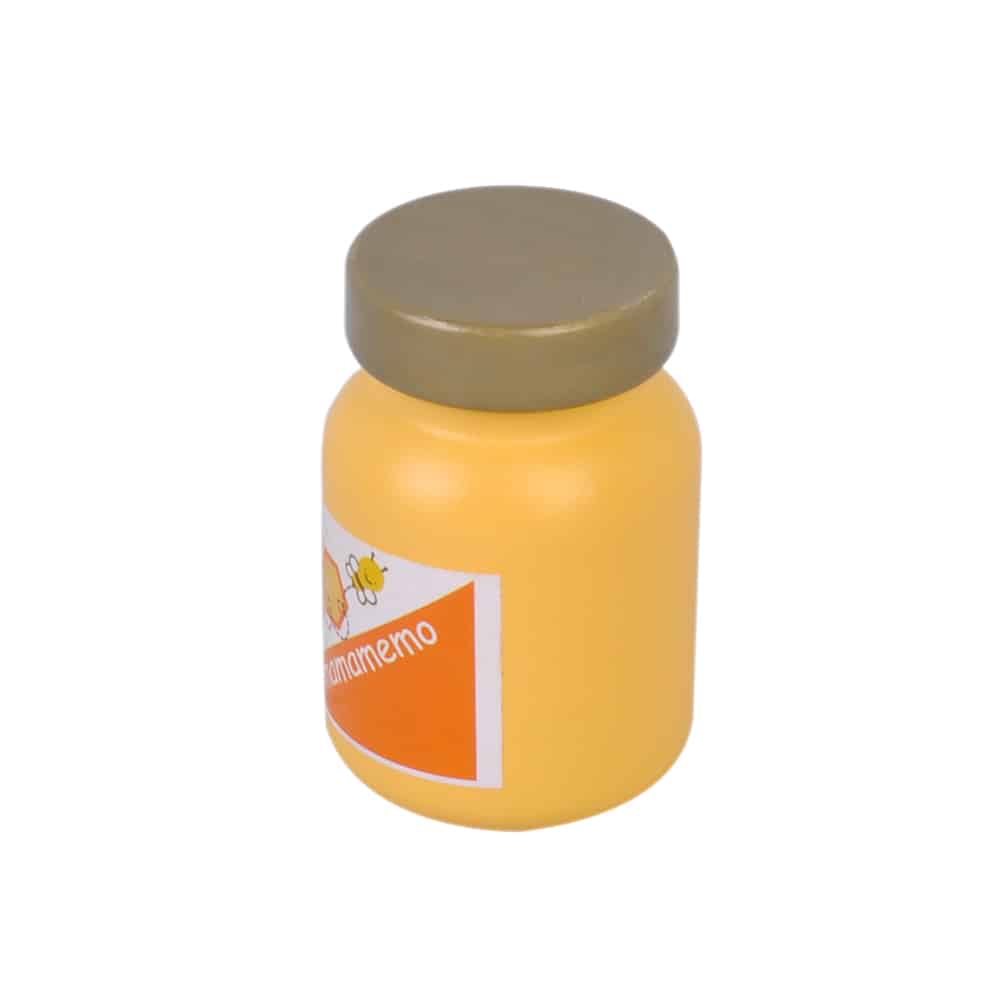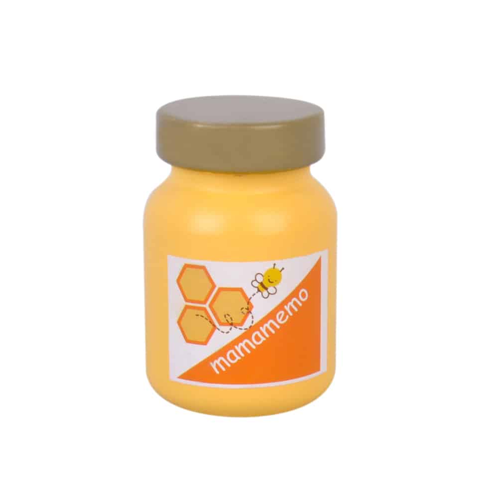 Mamamemo Honning kan bruges til te, på brød og mange andre ting. Derfor skal børn naturligvis også have det i deres legekøkken. Mamamemo har lavet et Honningglas i træ.
