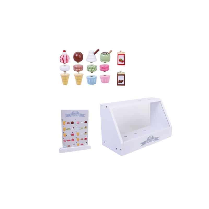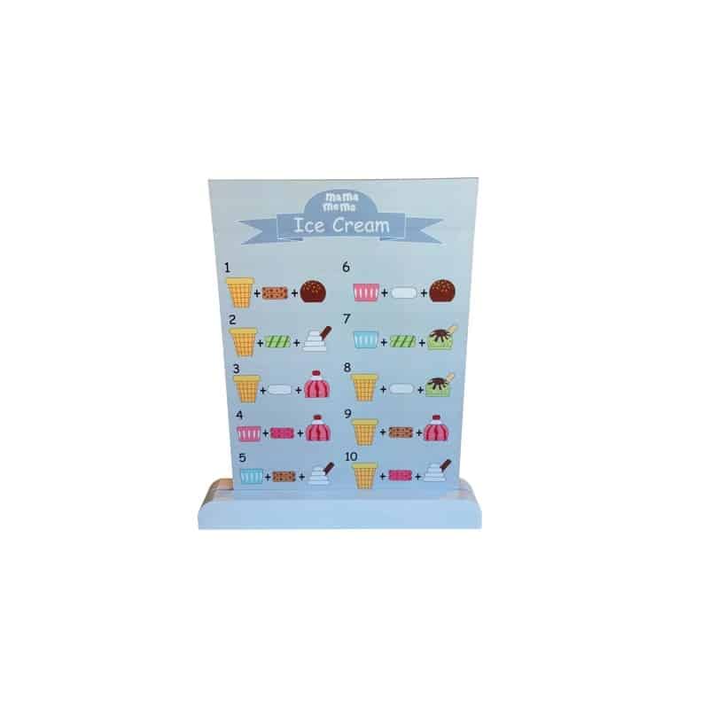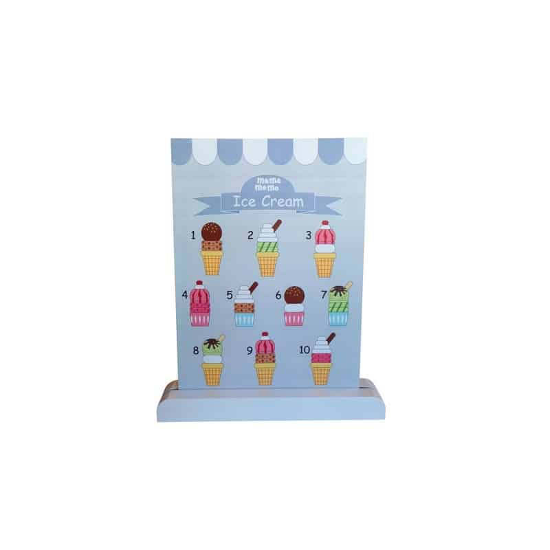 Mamamemo Isbar, virkelig fin isbod i træ til timevis af sjov rolleleg med at købe, sælge og lave is. Der medfølger alt hvad børnene skal bruge, for at kunne lave forskellige farverige isvafler og isbægre og på tavlen kan man dels vælge is, eller på bagsiden hente inspiration til hvordan de enkelte is sammensættes. Et rigtig godt stykke legetøj der indbyder til rolleleg, som vil udvikle børns kreativitet, ordforråd og sociale færdigheder.