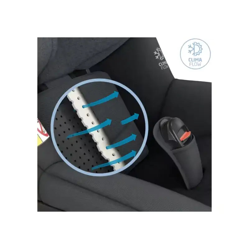 Mica Pro Eco har indbygget temperatur regulering ved hjælp af det patenteret climaflow, som sørger for at der kommer luft ind igennem stolen, så varmen kan komme væk fra barnets ryg.