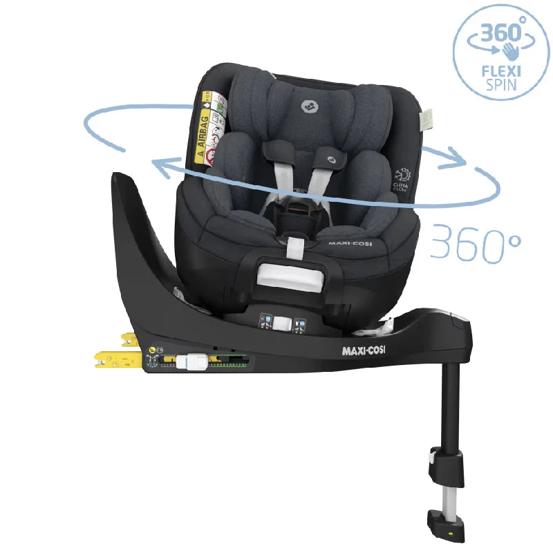 Stolen kan drejes 360 grader hvilket gør det nemt at få barnet ud og ind af bilen.