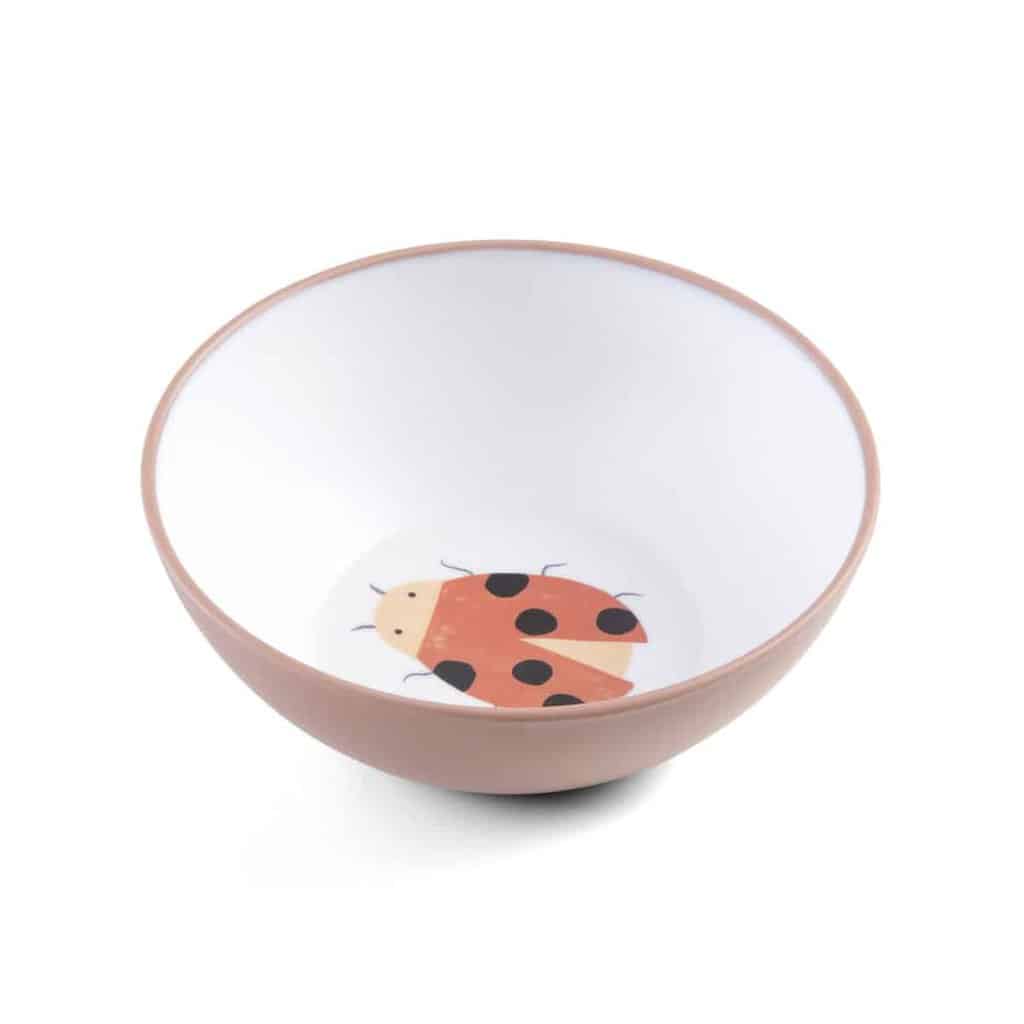 I skålen finder barnet en mariehøne. Illustrationen kan gøre måltidet sjovere og motivet kan aktivt bruges, hvis det kniber med at få lidt mad i barnet. For er mariehønen der mon stadig? Og kan en mariehøne egentlig også spise havregrød eller yoghurt?