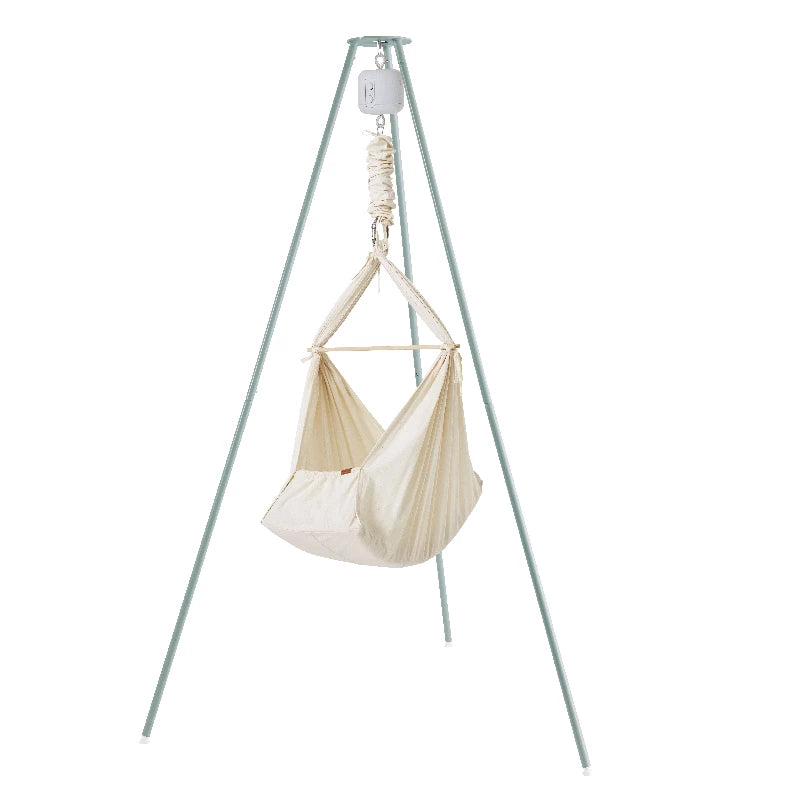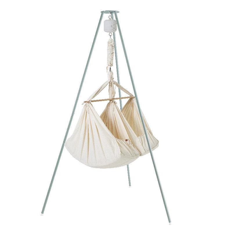 Designet og udviklet i Danmark. Basic vuggestativ er specialdesignet til brug af slyngevugge og tvillingeslyngevugge - både med og uden vuggemotor.
