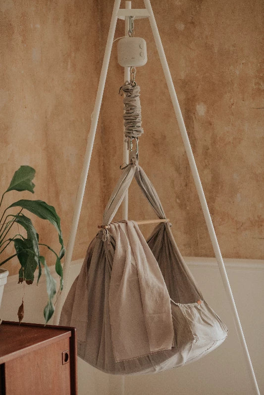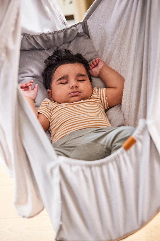 MEMBANTU slyngevugge efterligner forældrenes trygge favn og bløde bevægelser og former sig om barnets krop. Slyngevuggen, der også kaldes hængevugge eller fjedervugge, giver din baby en tryg og behagelig følelse. Den er perfekt til urolige babyer eller babyer, der sover relativt korte lure. Du kan placere den stort set, hvor du ønsker det, og du kan endda tage den med til bedsteforældre, venner eller i mødregruppen blot du har det rette tilbehør.