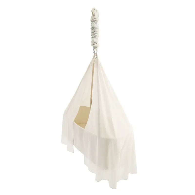 MEMBANTU vugge baldakin er lavet af det fineste og blødeste økologiske bomuld, som skaber et hyggelig og beskyttende rum for barnet. Den kan være med til at hjælpe med at reducere visuelle og auditive sensoriske stimuli. Beskyt din baby mod uønsket lys, mens de slapper af i MEMBANTU vuggen.