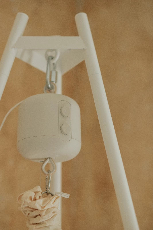 Dansk Design med Secure Rope Suspension: Vuggemotoren udstråler dansk æstetik og sikkerhed med sin pålidelige rebophæng, der sikrer både stabilitet og et elegant design. Udviklet i samarbejde med førende søvneksperter.