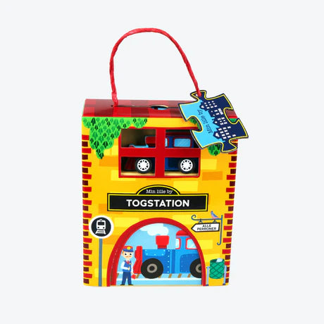 Min lille by Junior er en æske med et spændende legesæt, der giver barnet mulighed for at udforske og lære på en sjov og interaktiv måde. Alle legesættene kan sættes sammen, så læringsoplevelsen bliver endnu bedre, og barnet kan fortælle sine helt egne historier ud fra det, det leger med. I æsken finder du en sød og farverig bog om tog, et robust trætog, et puslespil samt flere legeområder, hvor æskerne kan bruges som små bygninger i legen. En stor fordel er, at emballagen er miljøvenlig og helt fri for plastik, hvilket gør produktet bæredygtigt og sikkert for børn.