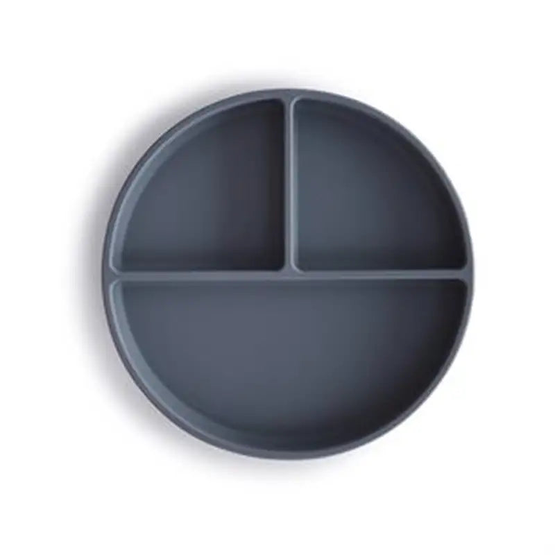 Gør spisetiden nemmere og mindre rodet med Mushies silikone tallerken med sugekop. Tallerkenen klæber effektivt til rene, glatte og tørre overflader, så den forbliver på plads, mens baby spiser. Den er opdelt i tre sektioner, hvilket gør det nemt at servere forskellige madvarer på en overskuelig og indbydende måde.