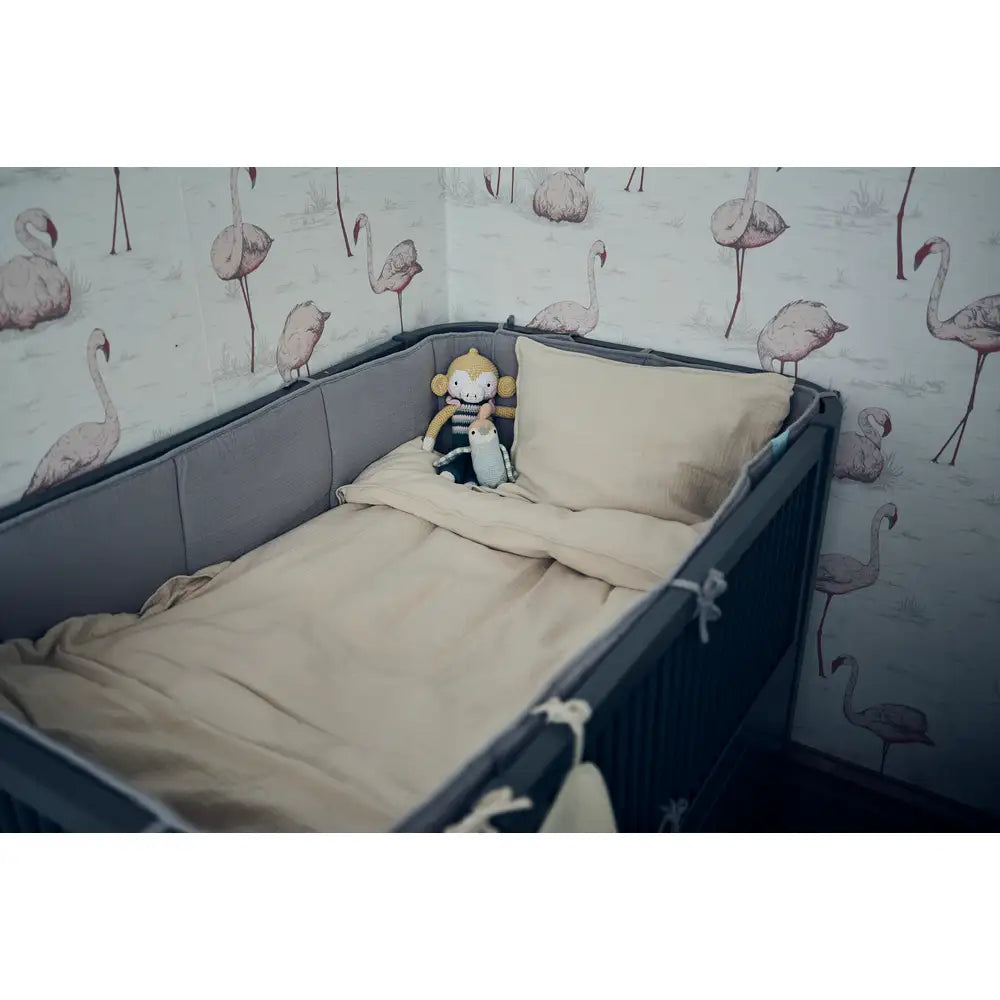 Najell junior sengesæt - Ivory er den ideelle følgesvend til din lilles barneseng. Det omfatter en blød pude og et dynebetræk lavet af luftig muslin. De neutrale farver på sengetøjet bidrager til en beroligende søvn og passer perfekt til ethvert børneværelse. Alle materialerne er nemme at vaske og skånsomme mod din babys sarte hud. Drøm stort, lille én. Psst... det matcher perfekt med vores sengekant, tæpper og sengetaske. Vores materialer er miljøvenlige og veganske, hvilket er bedre for planeten, bedre for dig og bedre for din baby. Dimensioner: 100x140 cm (dynebetræk) / 40x45 cm (pudebetræk). I Danmark: 100x140 cm (dynebetræk) / 40x45 cm (pudebetræk)