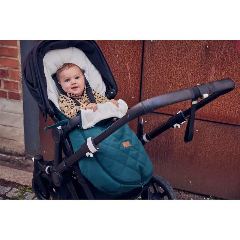 Najell Kørepose - Heritage Green er skabt til at modstå alle vejrforhold, fra vild vind og stormfuld regn til sprødt sne. Det vandafvisende materiale, den tykke og behagelige polstring og de temperaturregulerende funktioner sikrer, at du og din baby kan nyde udendørsaktiviteter uden undskyldninger. Du kan åbne eller lukke køreposen alt efter vejret ved hjælp af lynlåsen rundt om produktet. Den er også praktisk til at holde de beskidte sko udenfor ved blot at åbne den nederste del.