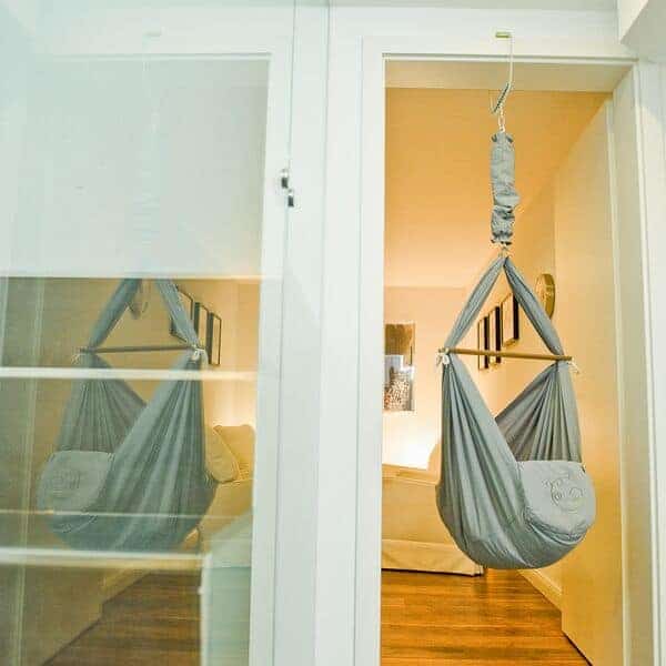 NONOMO® Slyngevugge er specielt god hvis dit barn har svært ved at falde i søvn. Nonomos fjeder vil hjælpe på en naturlig måde ved at rokke dit barn op og ned, ligesom i mors mave. Vuggen er formet ergonomisk, på denne måde fordeles barnets vægt jævnt og giver barnets ryg en sund og buet form. Dette aflaster noget af presset på halebenet og forhindre barnets hoved i at blive fladt.