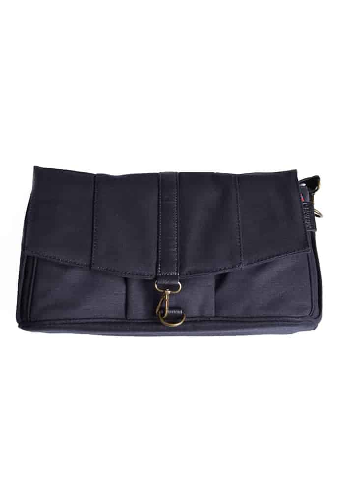 Vandafvisende yderstof i kraftig canvas tekstil. Mama Organizer Aarhus er en ny og praktisk taske til barnevognsstyret i kraftig canvas tekstil. Aarhus har et vandafvisende ydre, og praktisk inddeling på indersiden med justerbare rum, der kan rykkes rundt efter behov. På ydersiden findes to lommer i hver ende til flasker, samt 3 elastiklommer på fronten.
