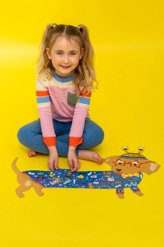 Puslespillet er formet som en skøn og lidt fjollet gravhund, og det er den smukke gaveæske også. 20 brikker med flotte skinnende folierede detaljer.
