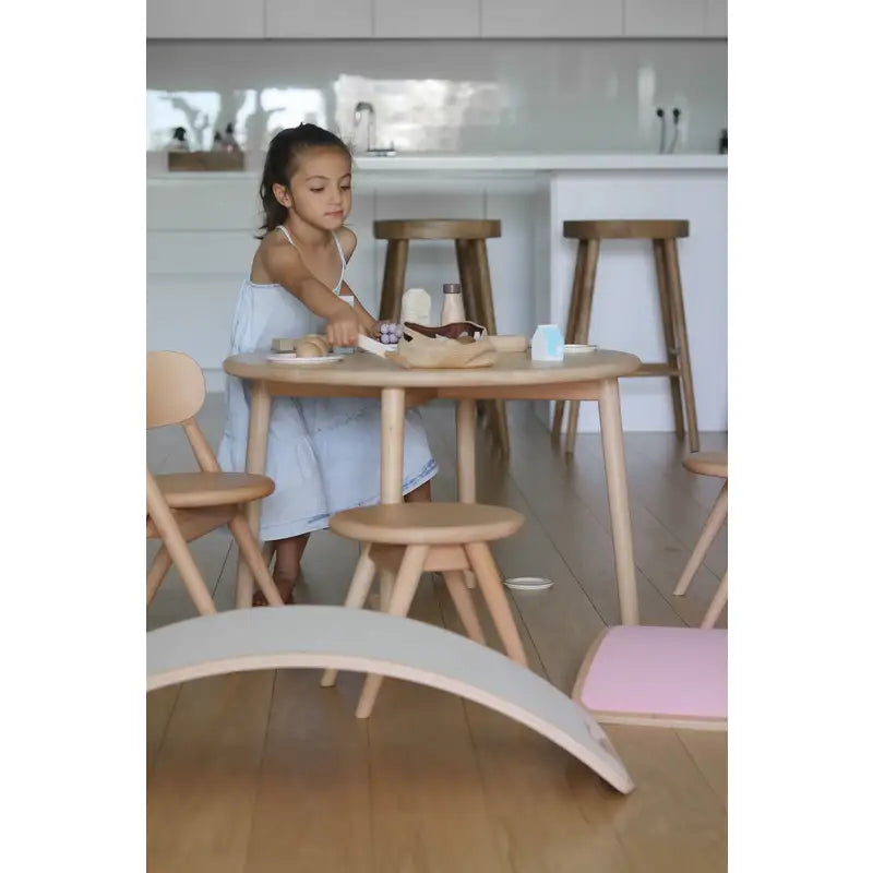 Rundt bord. Curve Lab. Designer Mikiya Kobayashi har designet et unikt rundt bord ved dets flotte træhåndværk og enkelhed. Bordet er ideelt til enhver aktivitet, fra leg til tegning og ethvert kreativt projekt for børn. Det stabile bord er lavet af massivt bøgetræ og har en mat finish. Det er perfekt til jeres børn i alderen 2- 5 år. Det minimalistiske design og den organiske form passer perfekt til enhver indretnings stil og flere generationer kan få glæde af bordet.
