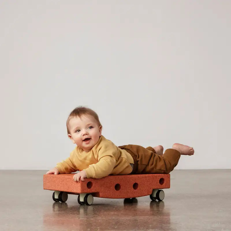 MODU Rullebrættet er et enkelt og alsidigt aktivitetslegetøj til grundlæggende motorisk træning med babyer og små børn. Læg dit barn på maven og sus rundt på gulvet, eller fjern hjulene og vip frem og tilbage. Selv små bevægelser og sanseindtryk kan bringe smilet frem hos små børn og det bliver kun sjovere! Som dit barn vokser, kan det suse og snurre sig selv rundt helt uden hjælp fra mor og far. Fjern hjulene og brug brættet til balancetræning, eller byg det om til en gyngehest eller lille gåbil ved at tilføje andre MODU-klodser.