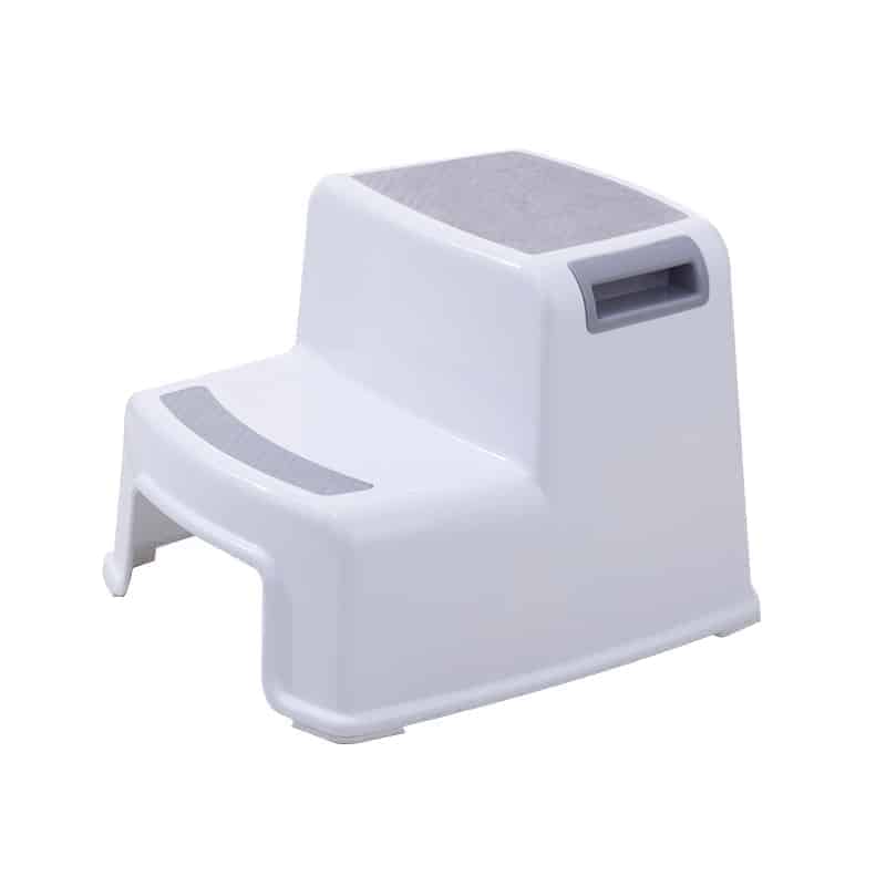 Praktisk skammel med 2 trin. Skridsikker trin og bund. Skamlen er super praktisk på badeværelset, i køkkenet eller på børneværeskset, så den lille kan nå op til håndvasken, køkkenbordet eller de øverste hylder på børneværelset.