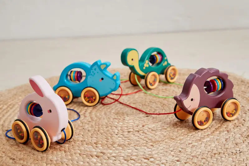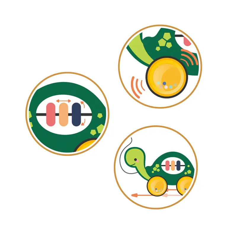 Aktivitets-skildpadde fra Scandinavian Baby Products. Med denne søde skildpadde er der fart over feltet! Dit barn kan skubbe skildpadden hen ad gulvet eller trække den efter sig. På denne måde motiverer skildpadden dit barn til at bevæge sig fremad uanset om din baby møffer sig frem, kravler eller allerede tager sine første skridt. Vores søde skildpadde har rangle-lyde i alle fire hjul samt aktivitetsruller i kroppen.