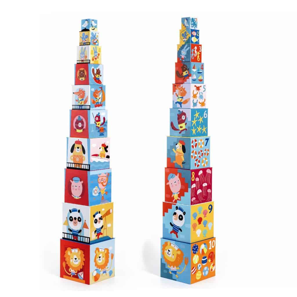 Klassikse stableklodser i kraftig pap. Klodserne har fine strandmotiver i stærke flotte farver.