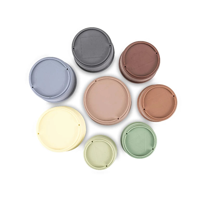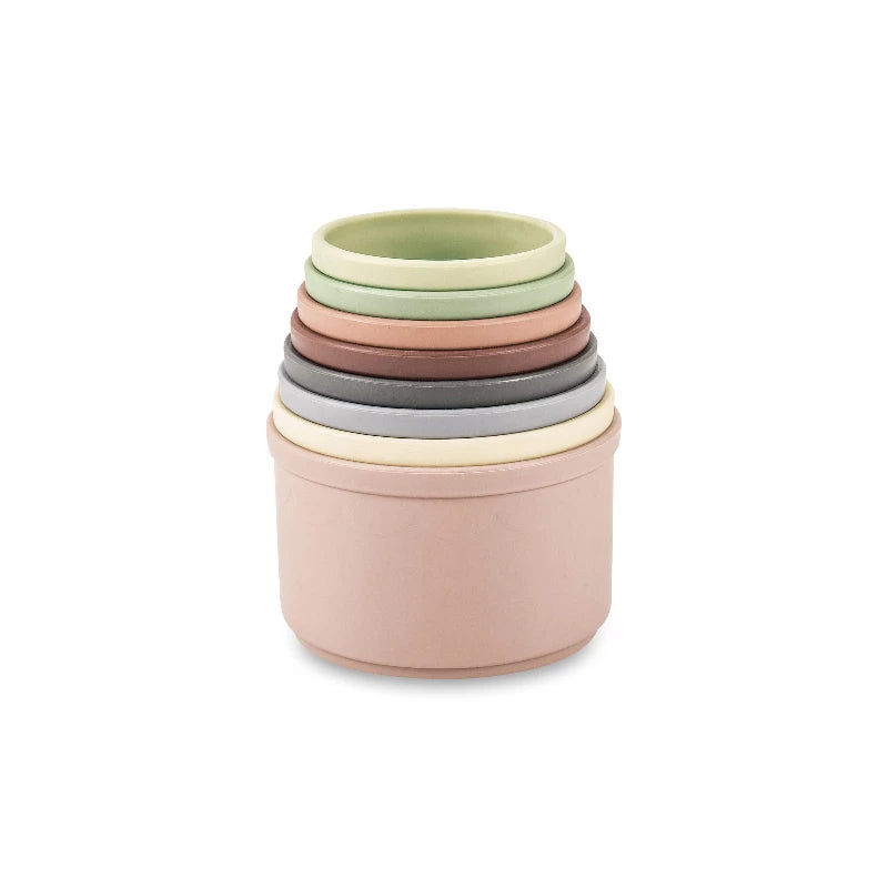 Sjove stablespande fra Scandinavian Baby Products. Sættet består af 8 spande i flotte farver. I bunden af alle spande er der udstanset huller, der gør spandene ideele til vandleg.