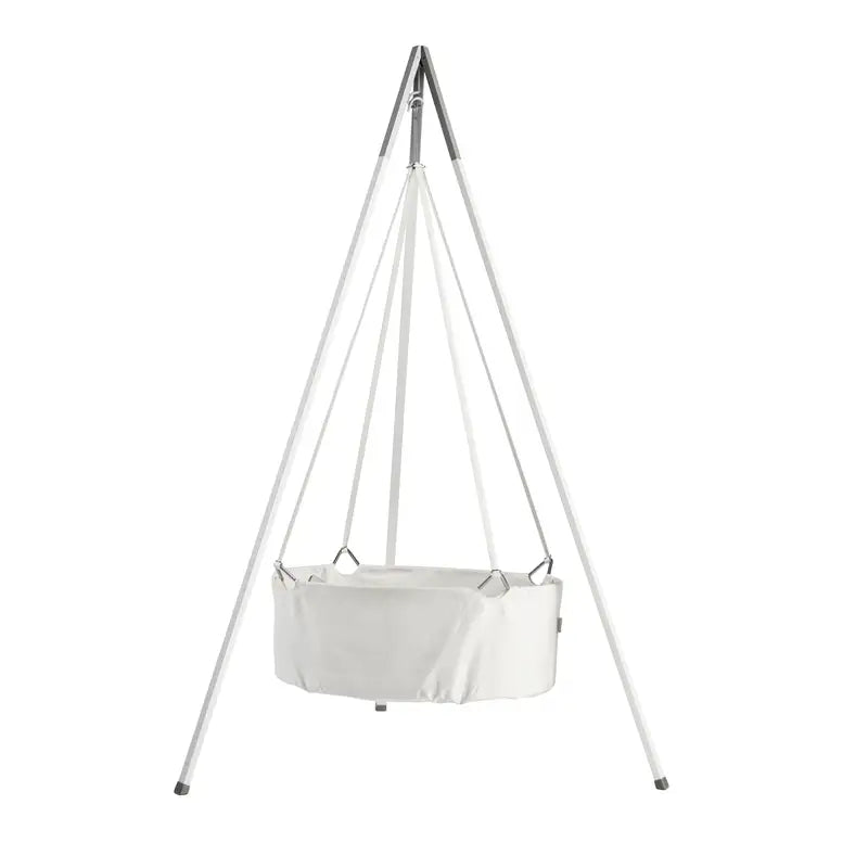 Leander Vuggestativ til Leander Vuggen er let at flytte rundt i rummet og kan klappes sammen når man ikke bruger det. Af sikkerhedsmæssige årsager bør stativet kun benyttes sammen med Leander vuggen. Ophængning af andre produkter eller genstande f.eks. fjedre i stativet sker på eget ansvar.