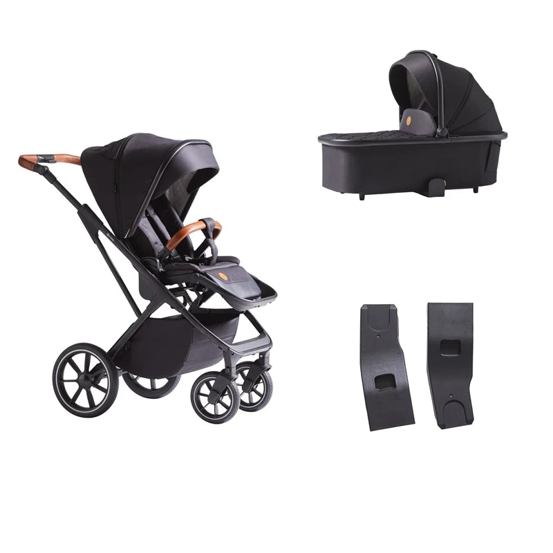 Eksklusivt design matcher klapvognen: sort med cognacfarvede læderdetaljer