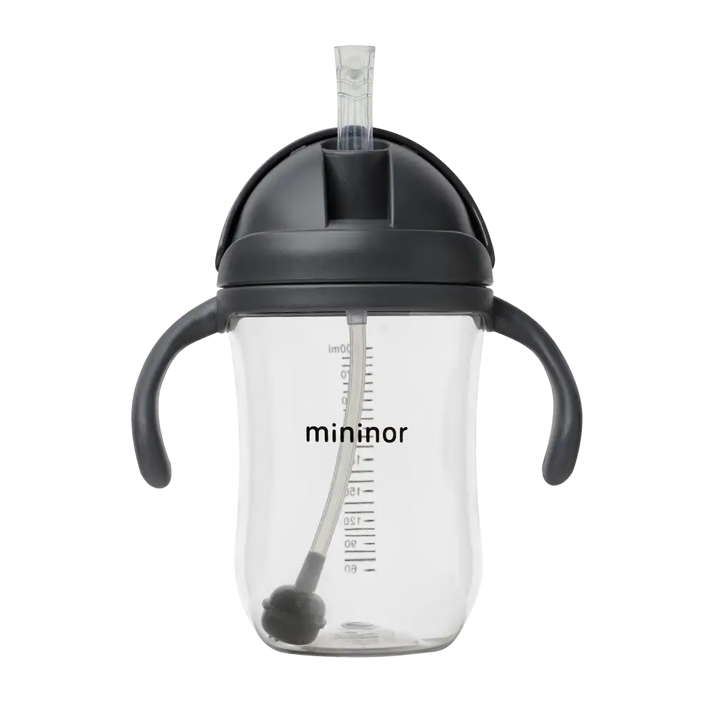 Mininor koppen har et smart låg, som kan skubbes frem og tilbage. Sugerøret er fleksibelt, og foldes sammen, når låget skubber over den. I låget er der også et lille lufthul, som sikrer, at der ikke skabes undertryk.