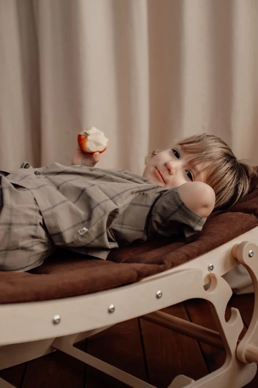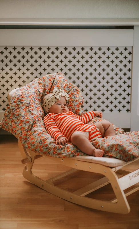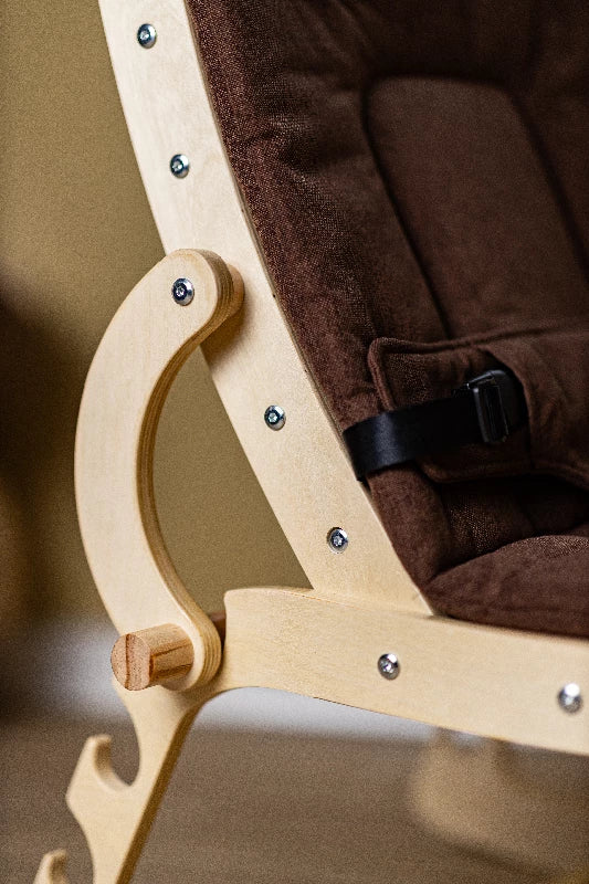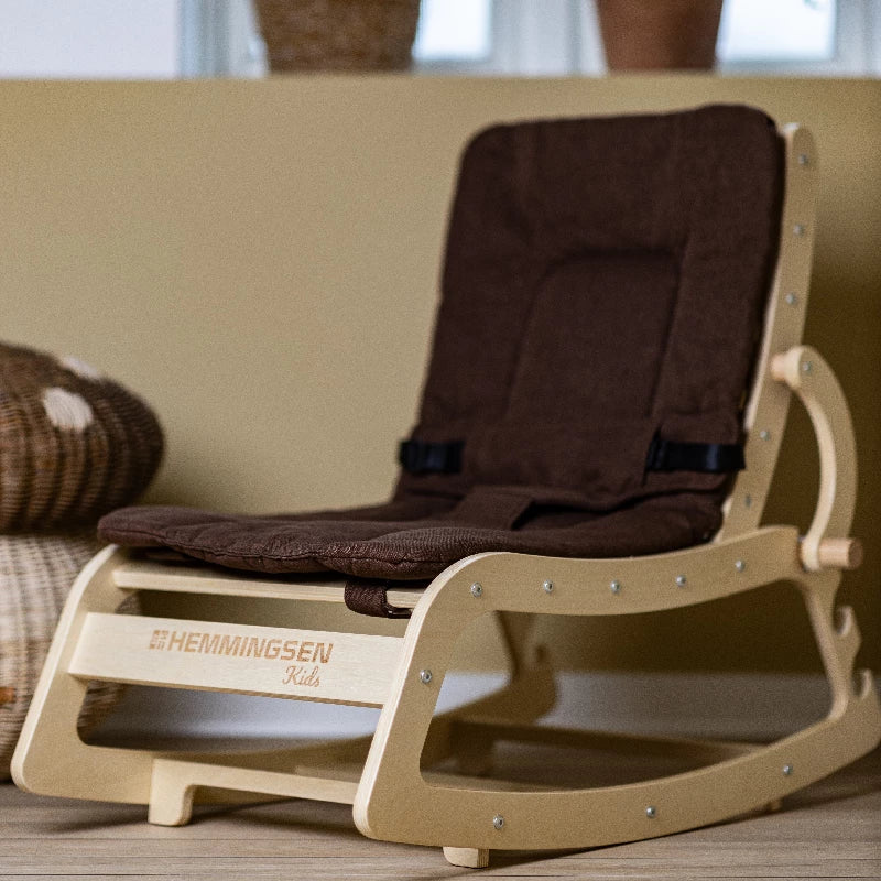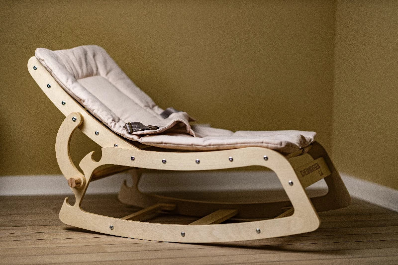 Skråstol: Susi Børnestolen fungerer som en traditionel baby skråstol, der beroliger og vugger din baby med blide bevægelser. Det justerbare ryglæn og det polstrede sæde med aftagelig babysele skaber en tryg og hyggelig oplevelse, der giver din baby ro og komfort.