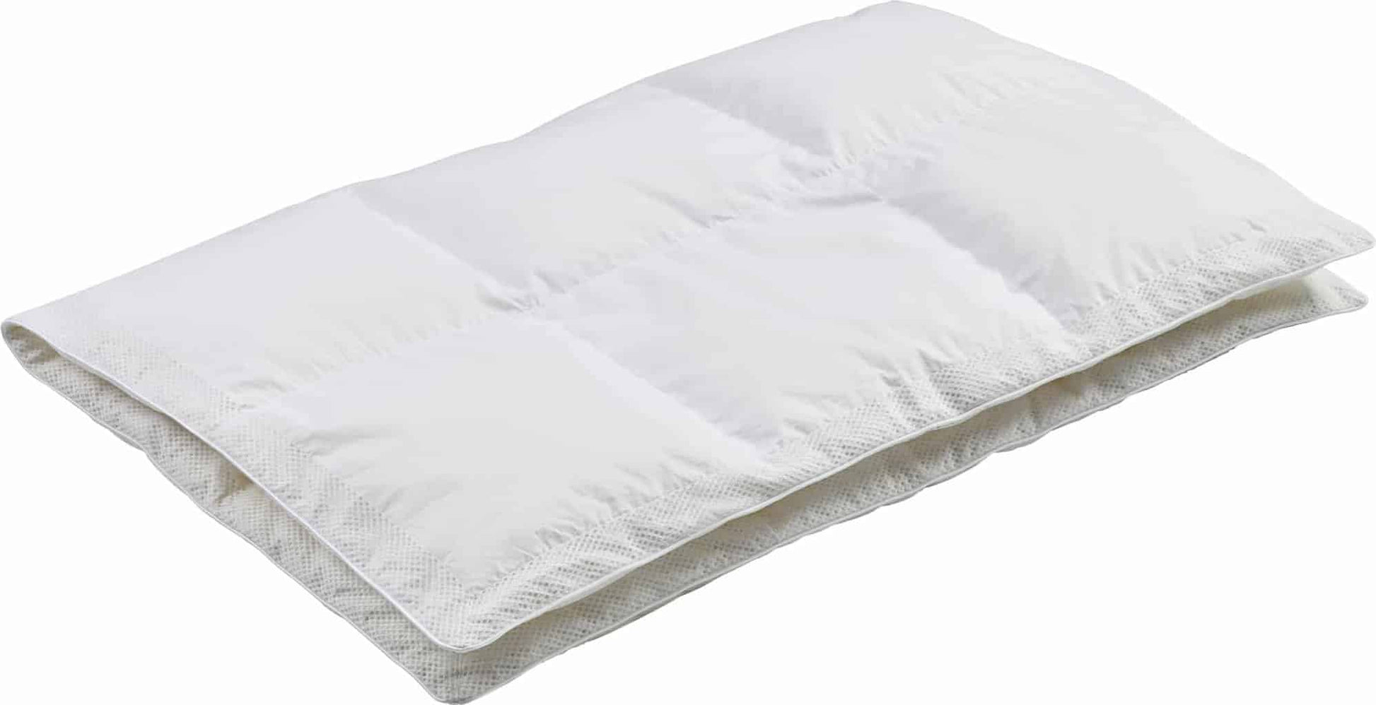 Temperatur og fugt regulerende baby dyne, aldrig for varm aldrig kold. Fyldet er 70% gåsedun og 30% temperatur regulerende micro kapsler. Helårs lun.